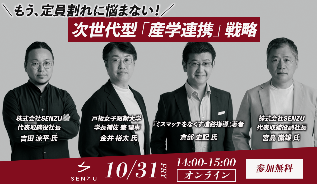 株式会社SENZUでは、会社設立を記念しオンラインセミナーを開催することといたしました。【もう、定員割れに悩まない!】次世代型 「産学連携」 戦略