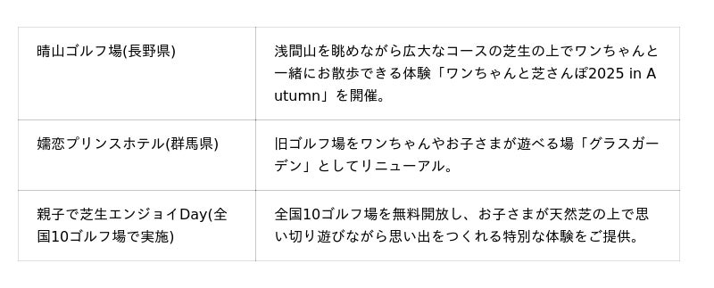 今回、気候変動により短くなった秋から急に訪れる冬を「短秋急冬(たんしゅうきゅうとう)」と名付け、その特徴を活かした秋冬の魅力体験を展開します。紅葉や旬の地元食材、雪景色や温泉など、日本の四季を凝縮して味わえる体験に加え、ゴルフ場およびスキー場をプレーの場にとどめず、プレーをしない方やお子さま、ワンちゃんにも開放し、誰もが楽しめる新たなレジャー施設へと進化させます。