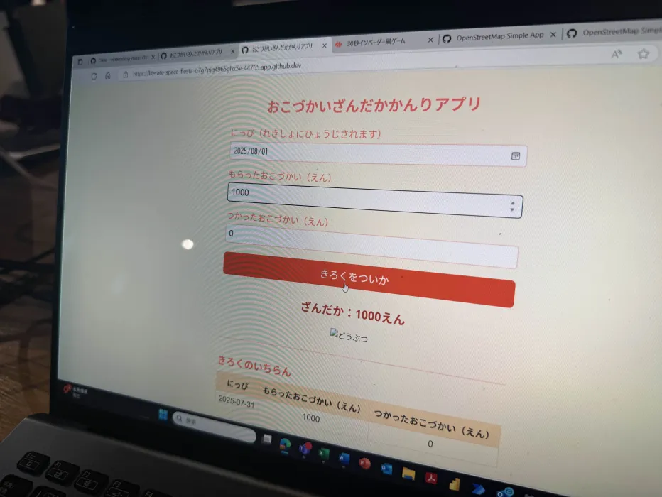 90分という短時間の中で、参加者は感覚的な指示とAIとの対話を重ねながら、自らのアイデアをバイブコーディングによって実際の動作するアプリケーションに変換する体験を行い、様々な実用的なプロトタイプ作品を完成させています。身の回りの課題を解決するためのアプリから、簡易的なゲームまで様々なアウトプットが生まれた中から一部をご紹介します。