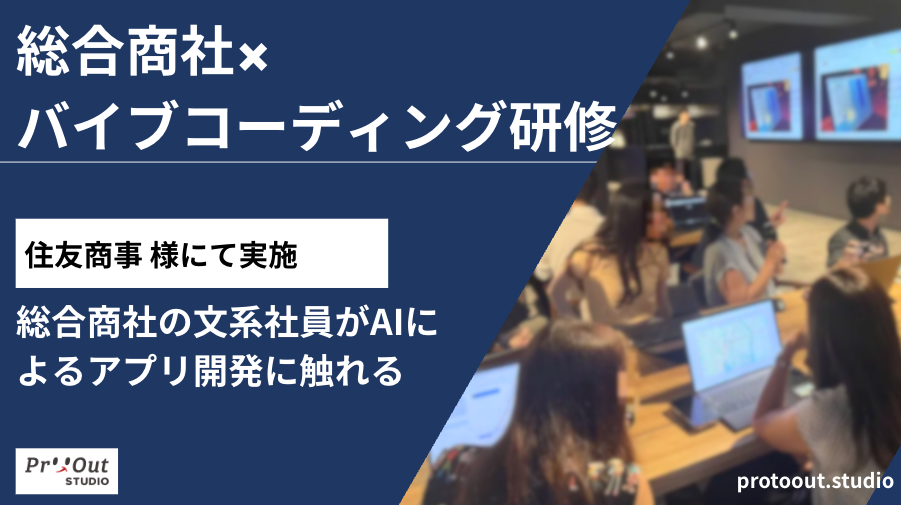 小売、医療、飲食など多様な業界にプロトタイピング研修を実施しているプロトアウトスタジオ(運営: dotstudio株式会社)が提供する「バイブコーディング体験研修」が、2025年度に住友商事株式会社(以下、住友商事)の社内チャレンジ制度を通じて実施されました。
