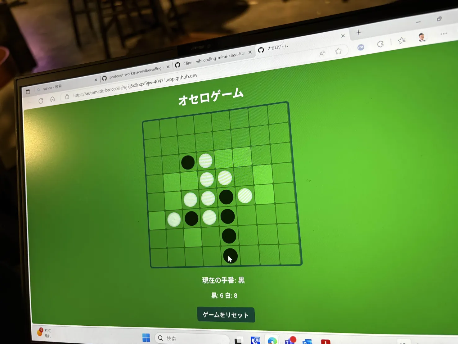 こちらは誰もが知っているオセロをAIと対決ができるレベルまで実装。参加者が実際にAIとの対戦で勝利を収めるなど、完全に動作するゲームアプリケーションです。