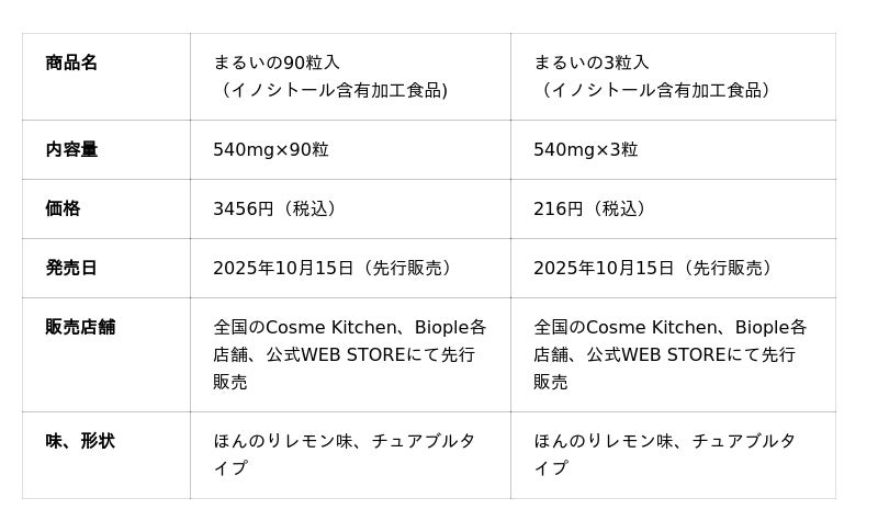 築野食品工業株式会社(本社:和歌山県伊都郡 代表取締役社長 築野富美 https://www.tsuno.co.jp/ )が展開する新ブランド「DREAM IN RICE BRAN!」より、米ぬか由来イノシトールをキー成分とした新商品「まるいの」を発売し、全国のCosme Kitchen/Biople/WEBSTOREで10月15日(水)より先行販売を開始いたします。