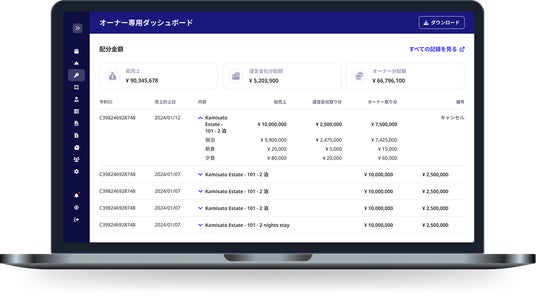 - - オーナーはポータルからリアルタイムで予約情報や収支を確認可能