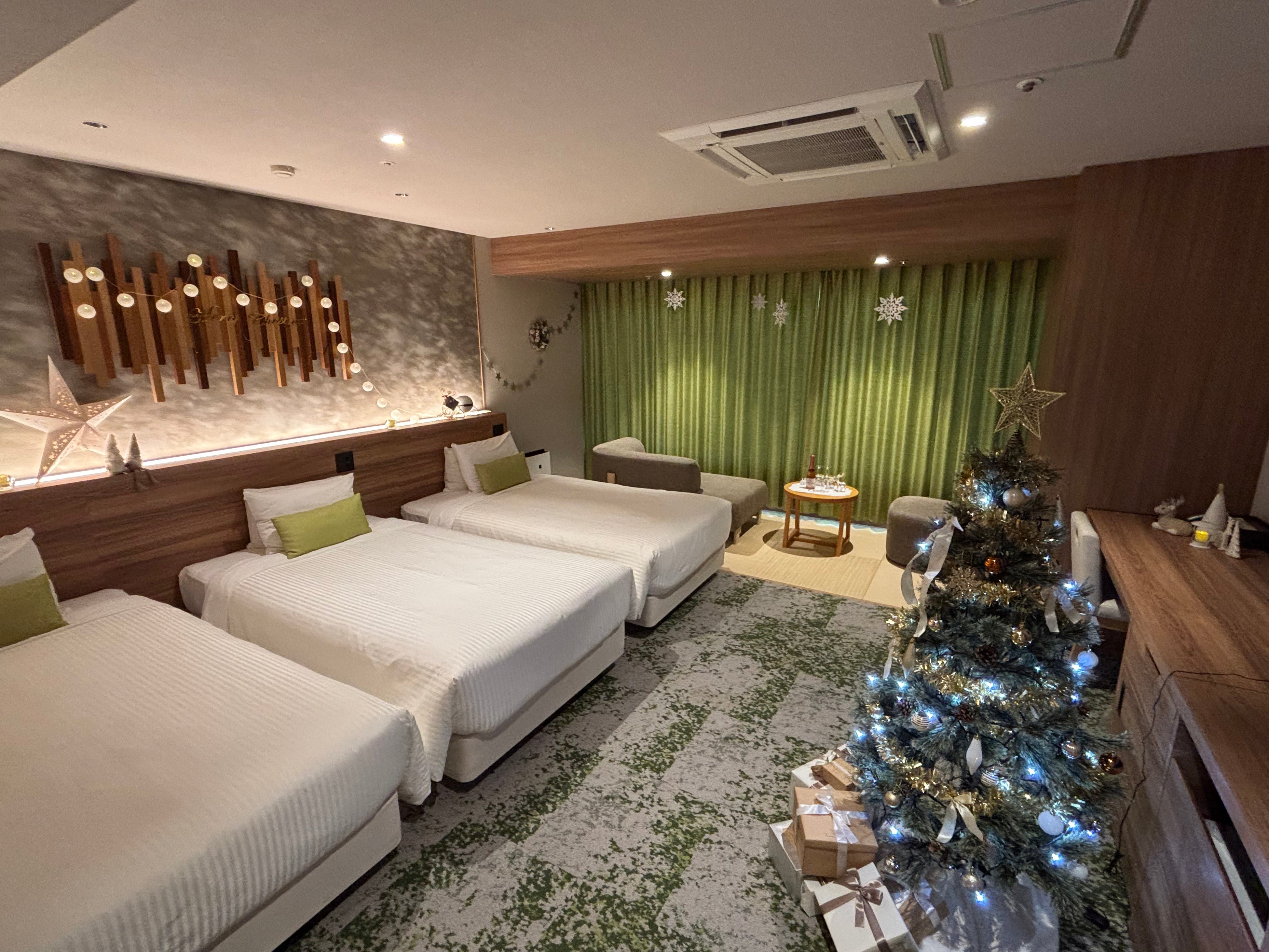 ツリーやリースなどでデコレーションされた1日1室限定ルーム。このひとときが、忘れられない思い出になりますように。大切な人と素敵なクリスマスをお過ごしください。