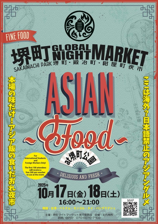 食欲の秋、文化の秋にふさわしい、五感揺さぶるイベント「堺町NIGHT MARKET」が初開催されます!韓国や台湾、ベトナムなどアジア6か国のグルメと本場の音楽が、来場する全ての方をエキゾチックな海外旅へ誘います!海外文化に興味のある若い方、母国からはるばるお越しの留学生必見です!ぜひぜひお越しください!