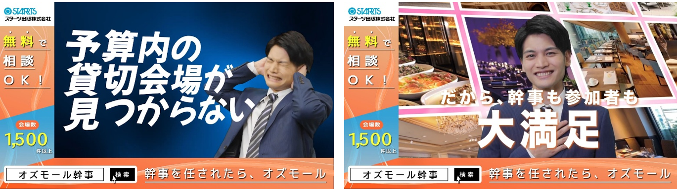 10月13日(月)より、就業時間帯にリーチしたオフィス内広告で「OZの宴会予約」紹介動画の放映を開始。働くビジネスパーソンの日常に寄り添いながら、幹事を任された社員をお助け。これからスタートする忘新年会、クリスマス会などの会場探しは「OZの宴会予約」をご利用ください。