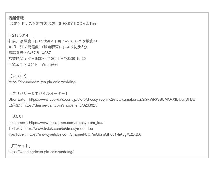 公式HP:https://dressyroom-tea.pla-cole.wedding/