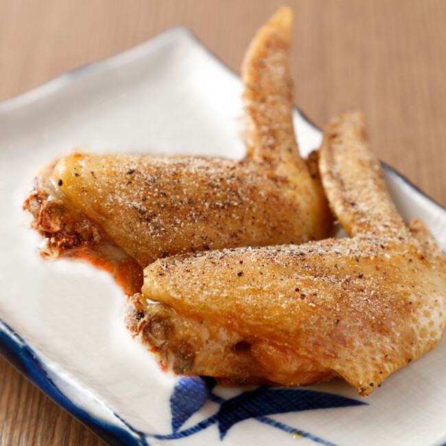 鮮度抜群の手羽先を、8種類のスパイスと特製ダレで味つけして、180℃の油で揚げて旨みを凝縮。外はパリッ、中はジューシー、お酒との相性を極めた自信作です。ほとんどのお客様にオーダーいただく酔っ手羽創業以来の看板メニューです。