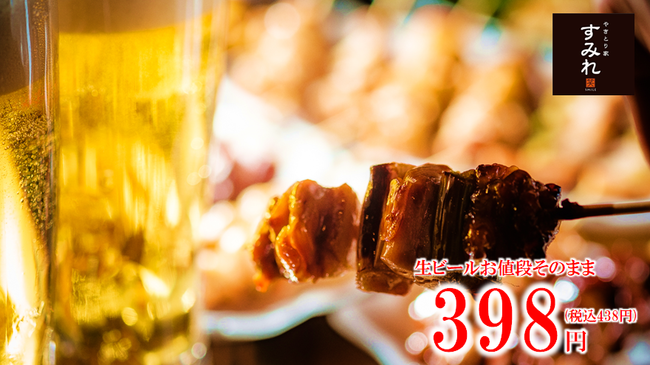 大山どり焼き鳥の専門店である「やきとり家すみれ」は、焼き鳥と並んでお客様が1番多く頼まれる「生ビール」を10月中はお値段据え置きでご提供いたします。
