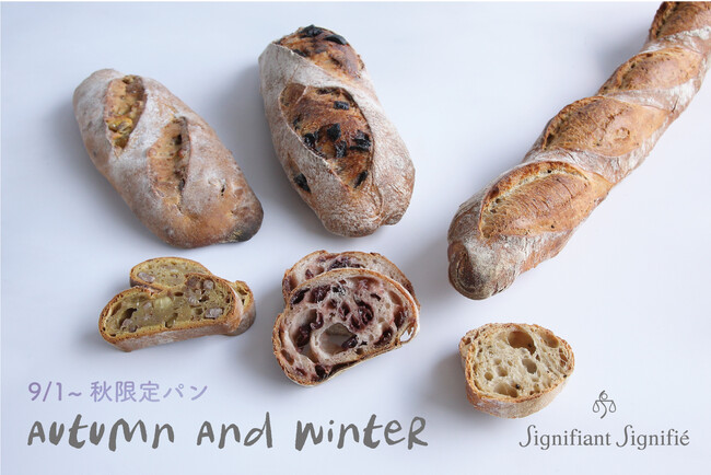 ? ピオーネ https://signifiantsignifie.com/?pid=162466282販売価格:3,672円 販売期間:9/1(木)~10月末 お取扱い:オンラインショップのみ? セゾン マロン https://signifiantsignifie.com/?pid=162466277販売価格:3,456円 販売期間:9/1(木)~12月末 お取扱い:世田谷本店・S+ (GINZA SIX)・オンラインショップ? バゲット ポルチーニ https://signifiantsignifie.com/?pid=162572744販売価格:1,080円 販売期間:9/1(木)~12月末 お取扱い:世田谷本店・S+ (GINZA SIX)・オンラインショップ? 秋のおすすめパンセット https://signifiantsignifie.com/?pid=169858712販売価格:4,860円 販売期間:9/1(木)~10月末 お取扱い:オンラインショップのみ