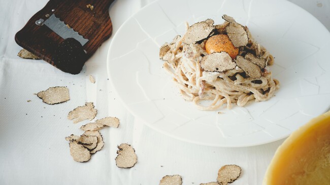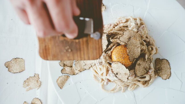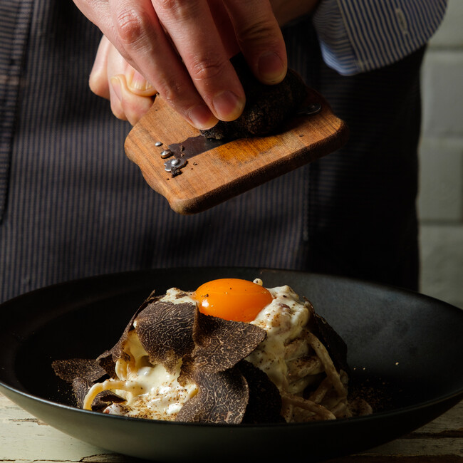 最後に卵黄、胡椒、黒トリュフをトッピングして完成です
