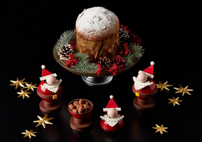 その他、ドライフルーツをふんだんに練りこんだイタリアの伝統的なクリスマスケーキ「パネトーネ」やかわいらしいサンタクロースのチョコレート細工「ル・ペールノエル・オ・ショコラ」などバラエティに富んだアイテムをご用意いたしました。