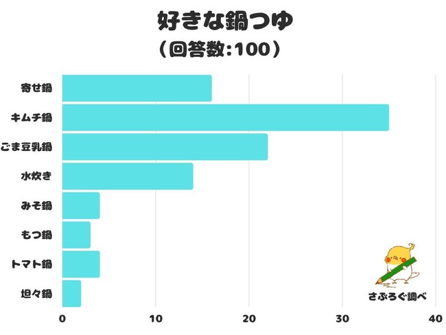 好きな鍋つゆをアンケートにて調査したところ、1位は「キムチ鍋」でした。