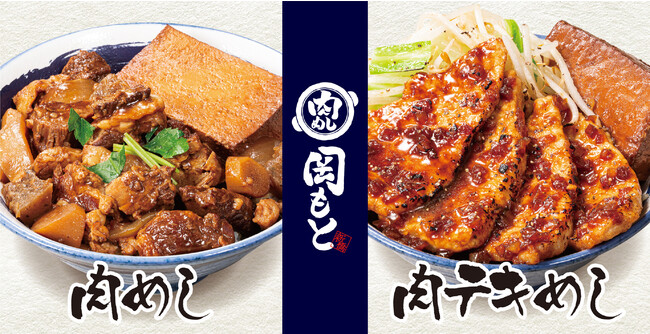 煮込みの「肉めし」と焼きの「肉テキめし」、岡もとでは肉の味わいが広がる丼を、おひとりでサッと気軽にお召し上がりいただけます。