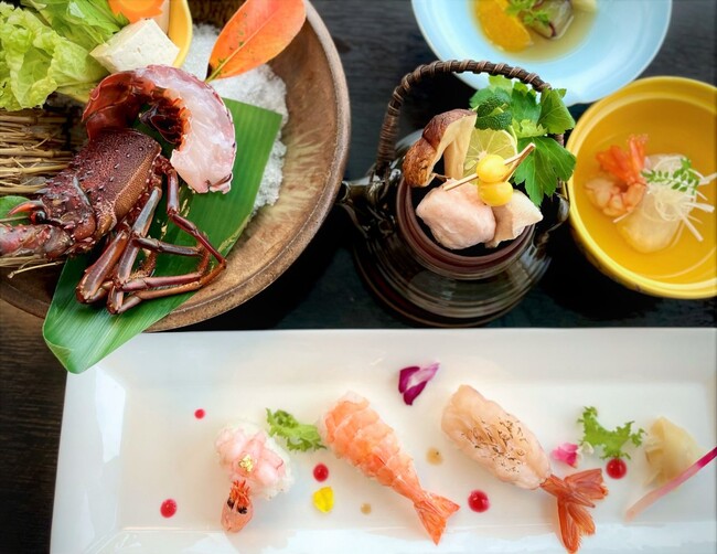 また、期間限定秋の味覚を愉しむお料理プラン「紀秋会席」や、伊勢海老をはじめ、牡丹海老、甘海老などを使い、味わいと食感に工夫を凝らした「海老会席」、和歌山県のブランド牛肉「熊野牛」をメインにした特別会席「熊野牛会席」、伊勢海老・鮑・蟹・クエ・熊野牛の5大食材の味覚を愉しむ美食会席「絢爛会席」など豊富なラインナップをご用意しております。