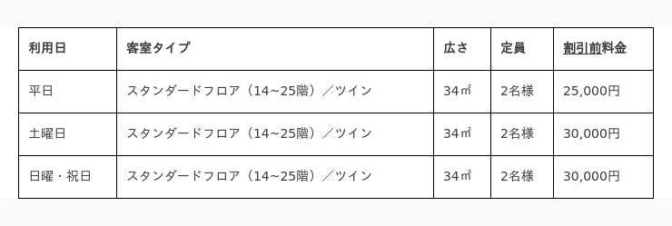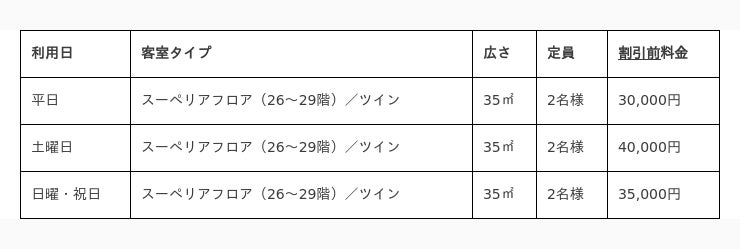 1 泊 1 室料金(夕朝食付、税金・サービス料含む)