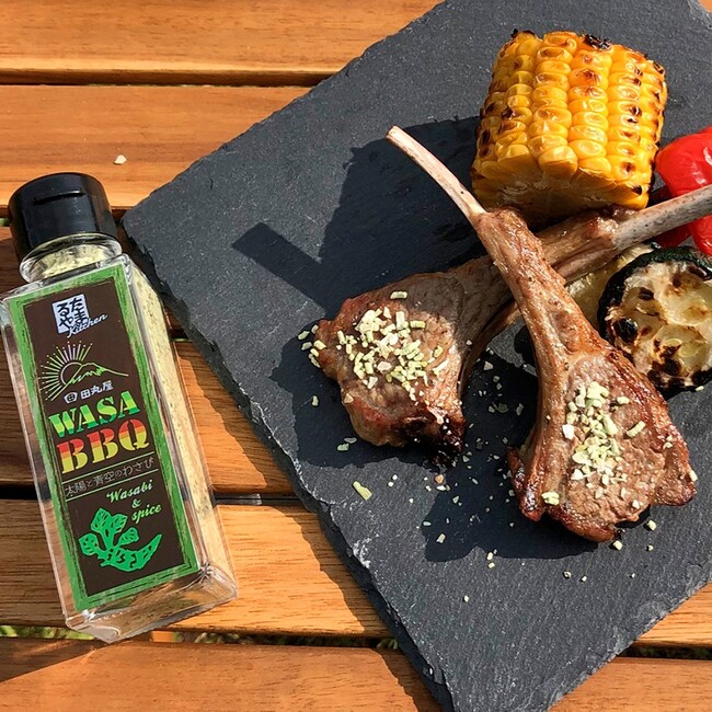 わさびを使ったバーベキュースパイス。日高産昆布や焼津産・枕崎産鰹の旨みもきいていて食べやすい味わいです。