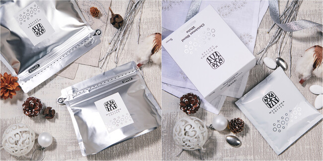 今年も、華やかなクリスマスをイメージした特別な味わいの「クリスマスブレンド」を赤・白の2種類でご用意しました。味わいの異なる2種類のブレンドが、クリスマスシーズンのコーヒータイムを彩ります。コーヒー豆のほか、お湯を注ぐだけで手軽に楽しめるドリップバッグもご用意いたしました。