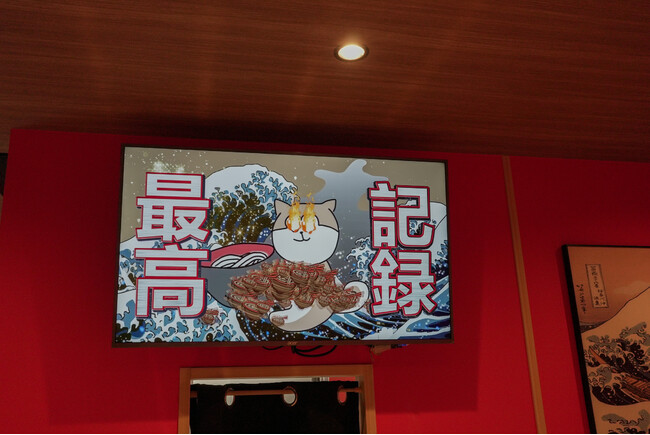 現在は大幅にパワーアップし、店内スクリーンに変更し、常に最高記録を表示し、最高記録更新の際にはオリジナルの映像とともに名前と杯数が店内スクリーンに表示されます。