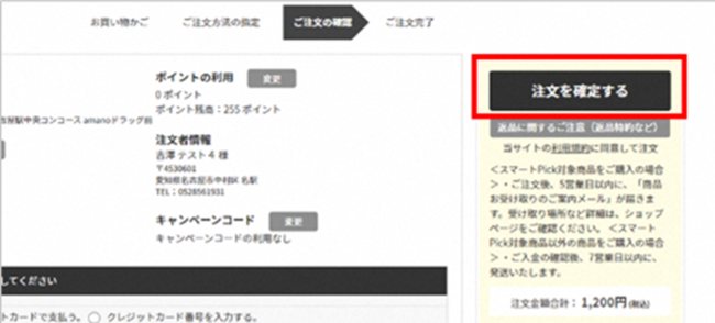 3. 注文内容を確認し、注文確定ボタンを押します。
