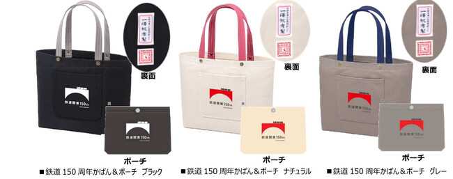 鉄道開業150周年を記念して、京都・老舗「一澤信三郎帆布(京都市・東山区)」とのダブルネームかばん&ポーチ全3種、各50セット(限定150セット)を、JR東日本グループが運営するショッピングモール「JRE MALL」で10月14日より数量限定で発売します。