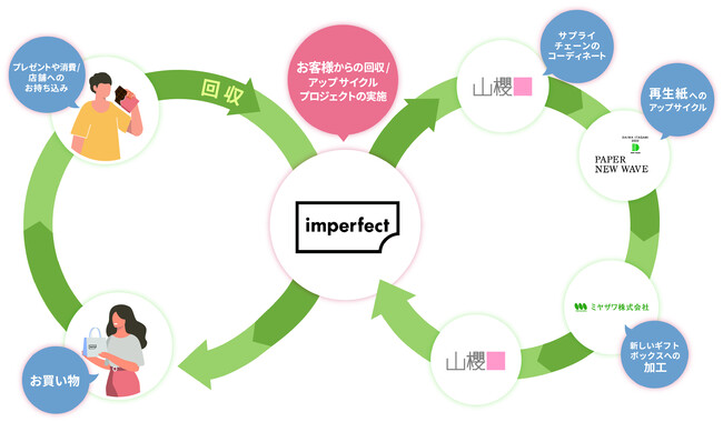 名刺・封筒など、オフィス用事務用品を中心とした紙製品メーカーの株式会社山櫻(所在地:東京都中央区、代表取締役社長:市瀬豊和)と、持続可能な社会の実現に向けて社会課題の解決にお客さまと一緒に取り組むimperfect(インパーフェクト)株式会社(所在地:東京都千代田区、代表者:佐伯美紗子)は、2022年10月より、imperfect 店舗で使用した紙製品のアップサイクルに向けたプロジェクトを始動致します。