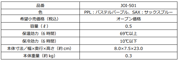 『サーモス 真空断熱キッズケータイマグ(JOI-501)』 仕様一覧