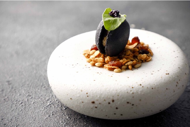 聖地「熊野本宮大社」へ繋がる巡礼の道、熊野古道エリアの食材を使用した開運を祈願するディナーコースです。冬が旬の紀州寒ブリをはじめとした、地元・和歌山の食材だけでなく、熊野古道エリアを構成する三重県や奈良県の食材を使用することで、巡礼を表現しております。三重県伊勢産のアオサと紀州本クエを使用したポワソンは、三重県伊勢神宮から続く「伊勢路(いせじ)」を、メインは紀州備長炭で炭火焼きにした和歌山県産猪に、奈良伝統冬野菜の大和まなや千筋みずなのソテーを添えて、奈良県吉野から熊野三山に続く道「大峯奥駈道(おおみねおくがけみち)」を表しました。