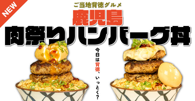 鹿児島から「食」を通して、消費者・生産者ともに笑顔にすることをミッションに掲げる、株式会社太(本社:鹿児島県鹿児島市、代表取締役 中島常夫)は、ご当地背徳グルメ(※1)『鹿児島肉祭りハンバーグ丼』と『鹿児島肉祭りハンバーグ丼 背徳MAX盛り』を販売開始することをお知らせいたします。