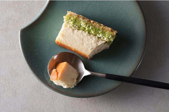 「ずんだチーズケーキ」は、薫り高いずんだを最大限に引き出すよう、サワークリームやレモンで酸味を調整し、しっとり焼き上げました。