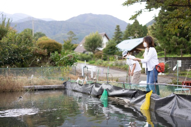 また、釣り堀にてニジマス釣り体験を行いました。釣った魚は、のちの夕食で提供しました。