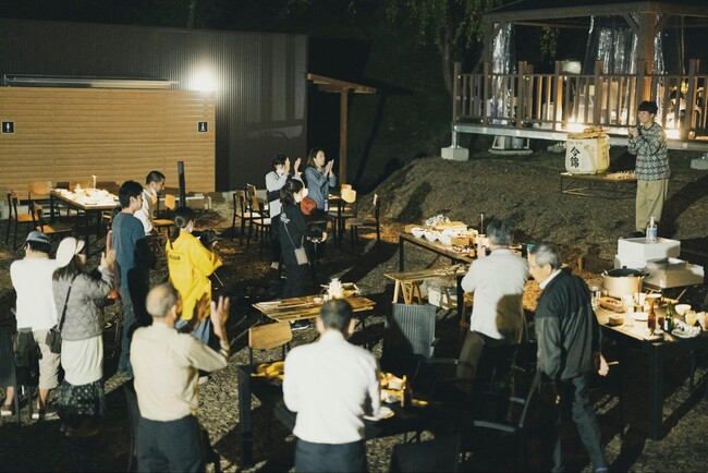 夕食を囲んで行われたレセプションでは、アルプスBASEを手掛けたプラザクリエイト代表取締役の新谷隼人より、ウェルカムスピーチがありました。「地域の皆さまなど多くの人に助けていただきながら、開業を迎えることができました。この町の良さをよりたくさんの人に知ってほしいという強い気持ちを持った飯島町の皆さまとなら、よりよい施設ができると確信を持ってこの事業をスタートさせました。ゲストや地域の皆さまにとって、アルプスBASEが思い出の広場となり、明日への活力となることを願っております!」と熱量たっぷりな挨拶でした。
