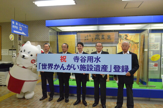 「世界かんがい遺産」とは、建設から100年以上経過し、かんがい農業の発展に貢献したもの、卓越した技術により建設されたもの等、歴史的・技術的・社会的価値のあるかんがい施設を登録・表彰するために、国際かんがい排水委員会(ICID)が創設した制度です。寺谷用水土地改良区(施設管理者)は、功労者の平野重定没後400年を祝うため、世界かんがい施設遺産の登録を目指し、令和4年2月に「国際かんがい排水委員会日本国委員会」へ登録申請を行い、6月6日、国内の遺産候補として選定され、今回の登録となりました。寺谷陽水は、1590年から今も天竜川左岸の水田1,504ヘクタールに「命の水」を届けています。