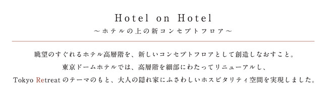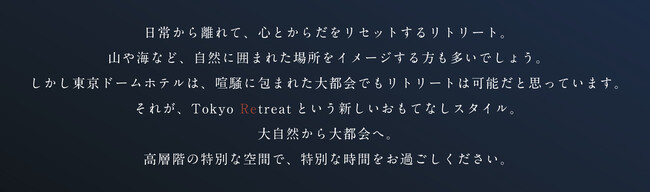 関連情報URL:https://www.tokyodome-hotels.co.jp/tokyoretreat/
