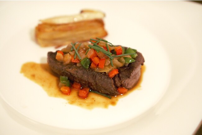国産黒毛和牛ステーキ じゃがいものミルフィユと松茸