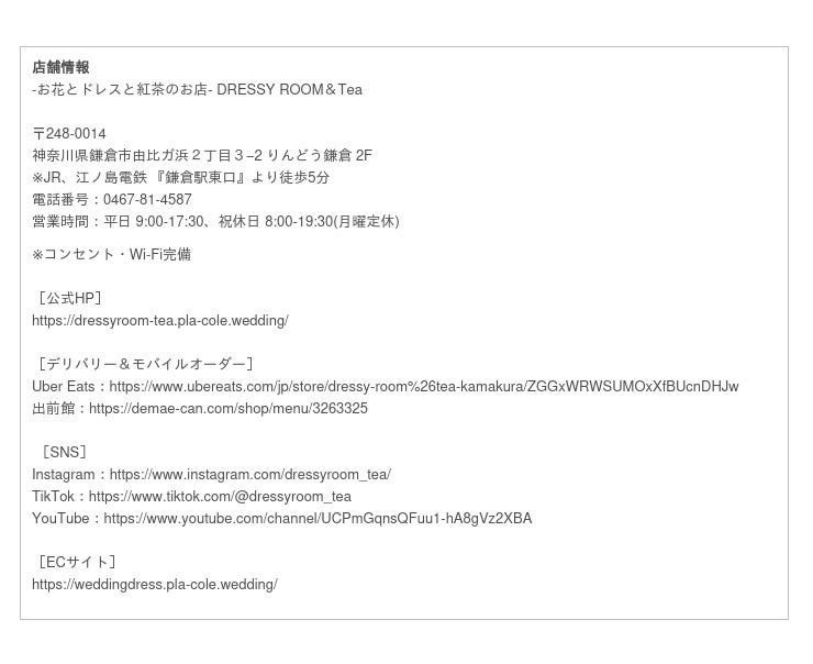 公式HP:https://dressyroom-tea.pla-cole.wedding/