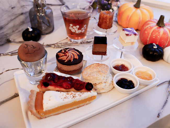 スイーツや紅茶、お花を自由に組み合わせて、自分だけのアフタヌーンティープレートを楽しむことができる「お花のよりどりアフタヌーンティー」に新たな10月の期間限定スイーツが登場。ハロウィンシーズンだからこそ味わえる、ダークなケーキセットが期間限定でお楽しみいただけます。
