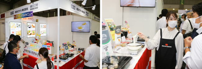 開催期間中には外食チェーン店、外食個店、介護・給食事業者関係の方々など多数の方にご来訪いただき、弊社製品「食べるコラーゲン」「もちのび」「ふわあわクイック」の新食感のご紹介と人手不足解消・時短調理のメニューをご提案いたしました。