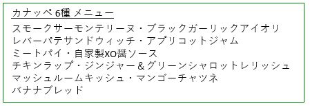 ボックスにはカナッペ6種、ティーサシェ2 つもついて、ボックスをあければすぐに優雅なティータイムをお楽しみいただけます。