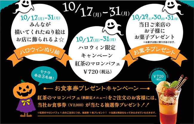 季節限定メニュー「紅茶のマロンパフェ」をご注文いただくと、セナラお食事券が抽選で当たります☆