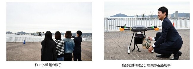 3. 着陸後、着陸ポートのパイロット補助者が、着陸ポートまで受け取りに来た注文者に手渡します。