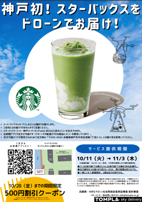 日本最大級のデリバリーサービス『出前館』(東京都渋谷区)は、TOMPLA株式会社(新潟県新潟市)、株式会社吉富運輸(兵庫県神戸市)、日本コンピューターネット株式会社(大阪府大阪市)、スターバックス コーヒー ジャパン株式会社(東京都品川区)、神戸学院大学(兵庫県神戸市)と協働し、兵庫県・NIROの令和4年度ドローン社会実装促進実証事業として、2022年10月11日(火)から11月3日(木)まで、 神戸市ハーバーランドとポートアイランド間で、『出前館』のアプリを利用したフードデリバリーのテストマーケティングを行います。なお、TOMPLA株式会社との取り組みは、2022年9月の新潟市でのテストマーケティング※に続く2回目の取り組みとなります。※10月15日(土)のフライト時に、機体に不具合が生じたため、継続しての運行ができなくなったことから、実証実験を一時中止とさせていただきます。(2022年10月17日(月)追記)