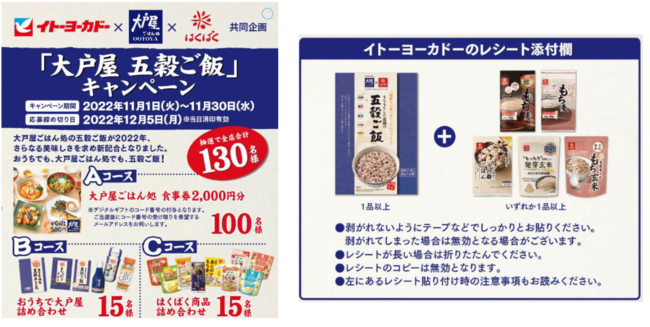 対象商品:イトーヨーカドー各店舗※で購入された「大戸屋 もちもちした食感の五穀ご飯」とその他の