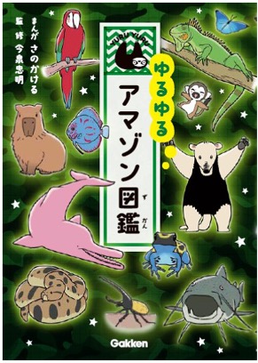 『ゆるゆる図鑑アマゾン展』のみどころはGakkenの「ゆるゆるアマゾン図鑑」とコラボし、ゆるゆる図鑑の世界観の中に生体などが展示されます。展示する生体はアナコンダの仲間などの爬虫類、アマゾンツノガエルのような両生類、ピラニアに代表される魚類を合わせて22~25種類となります。