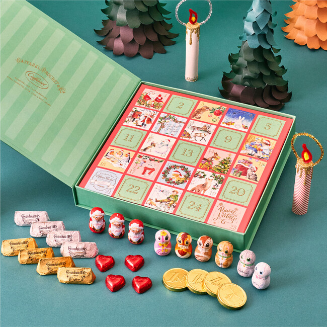 内容:昨年初登場し、話題を呼んだアドベントカレンダー。ジャンドゥーヤをはじめ、クリスマス限定のサンタクロースのホイルチョコレートや、可愛らしいネコのホイルチョコレートなどを全25粒セット。12月1日から25日まで毎日1粒ずつお楽しみいただける、売り切れ必至の商品です。