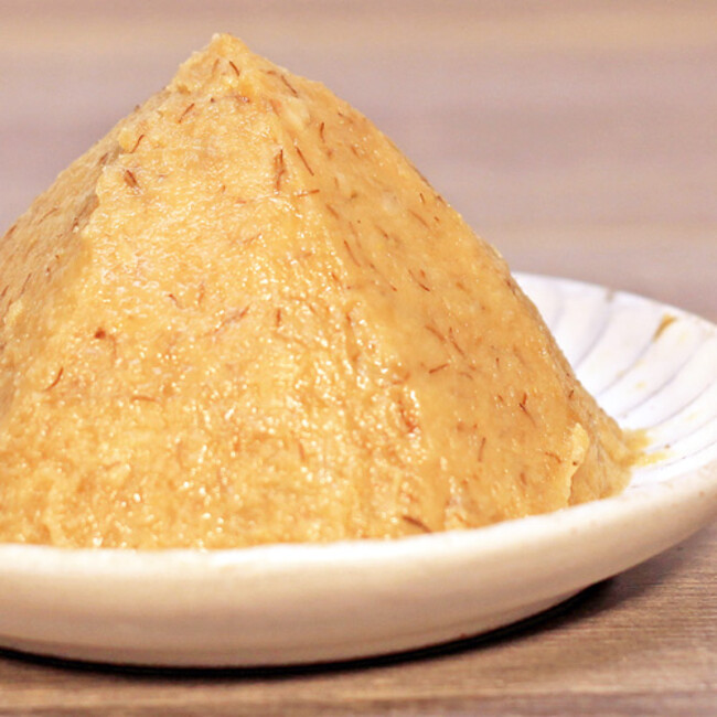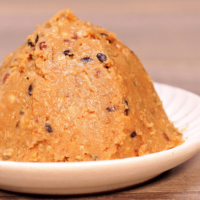 70%に精白した岡山米で造られた贅沢な麹をたっぷり 15 割使用。 さらに国産大豆の皮を磨きとり、木樽で仕込み半年以上じっくりと天然熟成させた味噌です。 雑味の無いさっぱりとして清純な甘み、大吟醸酒のようなフルーティーな香りを楽しめます。