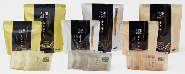 ひきたてのだし本来の香りと味わいを楽しんでいただける調味済だしパックです。素材になるべく熱をかけず、“かつお節の香りをとばさない“乾燥法により、だしをひいた時に漂う「ほっとするような、かつお節本来の優しい香り」を極めました。一つ一つ不活性ガス充てんをした個包装は、酸化を抑え、使う瞬間まで風味を保ちます。国内製造の“本枯鰹節“、芳醇な香りとうま味が楽しめるプレミアム醤油“特選下総醤油“、だしとの相性がとてもよい“クリスマス島の塩“、「かつおと昆布」には北海道産“真昆布“、「焼あご入り」には国内製造の“焼あご“を使用し、シンプルに素材の美味しさを追求しました。化学調味料無添加です。