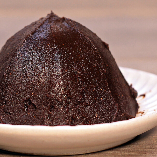 国産大豆と塩だけで 2 年以上、杉の大樽で熟成した八丁みそに国産原料の米みそをブレンド。 八丁みその濃厚なコクと渋みが米みそで少しやわらいだ味わいです。