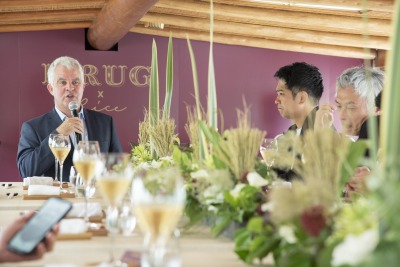 2022年6月には、クリュッグ6代目当主オリヴィエ・クリュッグを迎え、日本料理かんだ 神田裕行氏やSUGALABO 須賀洋介氏をはじめとする10名クリュッグアンバサダーシェフとともにツアーを慣行。日本らしい伝統的な屋形船をクリュッグ仕様に一新し、束の間の野外アクティビティを満喫しました。屋形船ではクリュッグ グランド・キュヴェ 170エディションでの乾杯に続き、お米マイスターを招いた3種類の磨き度の違う精米の比較テイスティングを行い、ライスへの知見を深めました。下船後はフォーシーズンズホテル丸の内 東京内「SÉZANNE (セザン)」に移動し、2021年より新クリュッグアンバサダーに任命されたダニエル・カルバートシェフの「KRUG×RICE」をテーマとした「厚岸牡蠣コシヒカリ米オゼイユ」をはじめ、ライスの特徴を存分に生かした芸術的な逸品をランチで堪能し、クリュッグとのフードペアリングを愉しみました。