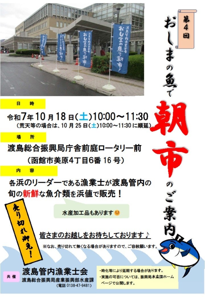 昨年も大盛況だったおしまの魚で「朝市」を今年も開催します!